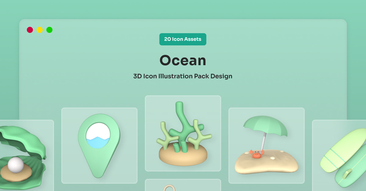 Infuse your design with tropical freshness through this colorful 3D icon pack. Inspired by oceanic elements like corals, shells, waves, and wooden boats, each icon delivers a lively and inviting tone for modern digital use.