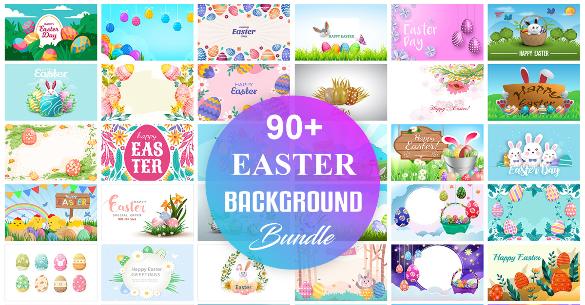 The bundle includes unique & high-quality 90+ Easter Background.