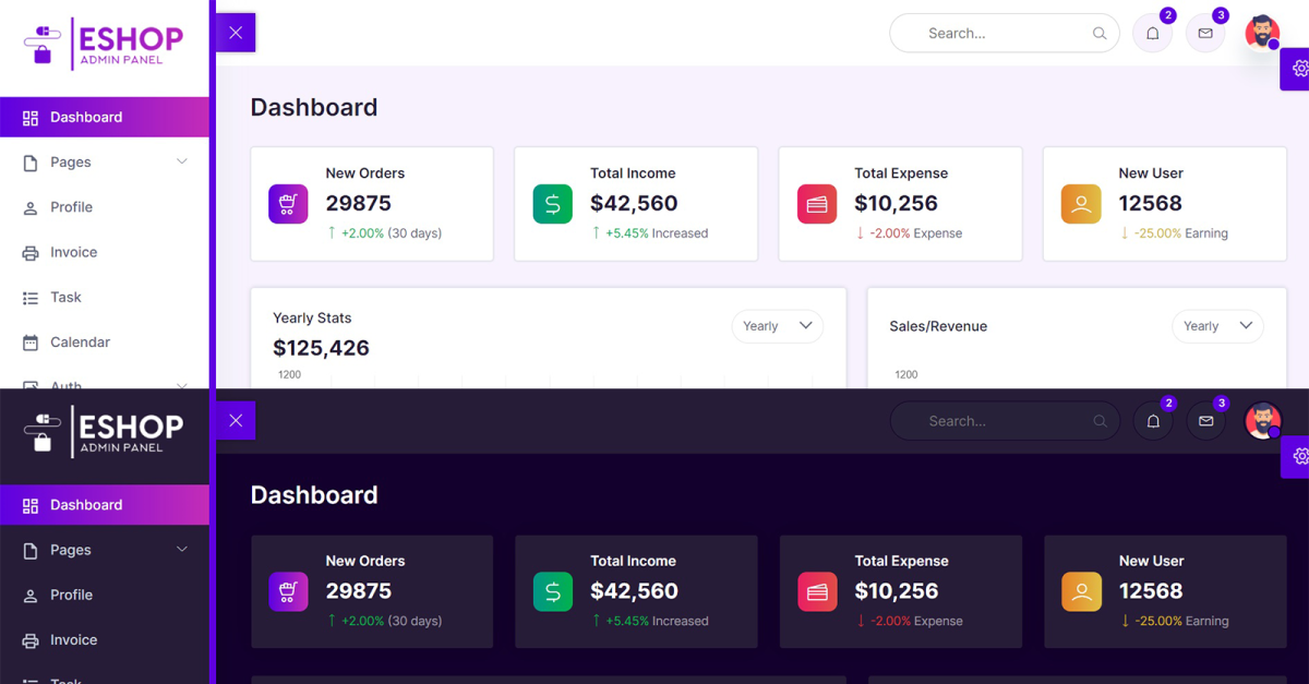 ESHOP is the Ecommerce admin panel template which built on top of the popular framework Bootstrap 5.1.3. Concept of design for Ecommerce Admin is based on the Bootstrap UI design and finally it comes out with a clean and neat design. It is built on top of the popular Bootstrap Framework. Besides that, it is bundled with a lot of third party plugins, reusable widget and much more