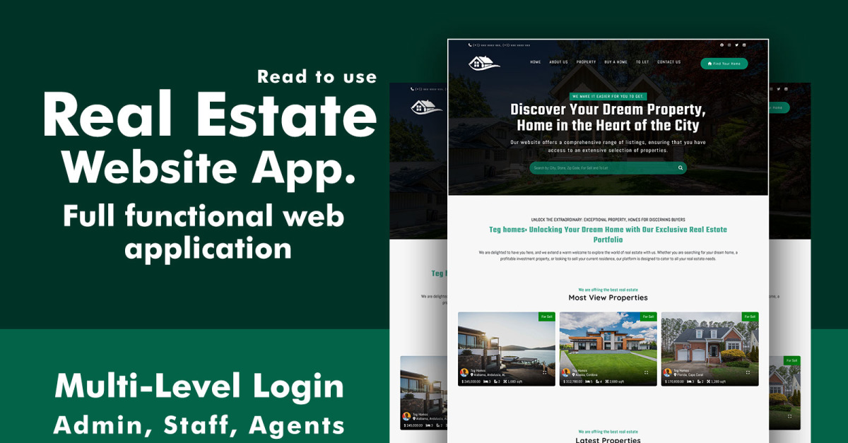 Teghomes 是一款采用 PHP 和 MySQL 设计的尖端房地产 Web 应用程序,旨在彻底改变在线房地产交易的方式。 Teghomes 凭借其时尚而现代的设计,提供无缝的用户体验,满足房地产经纪人和潜在购房者的需求。