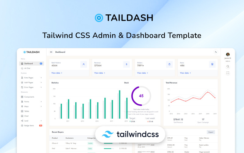 TailDash - Tailwind CSS 管理和仪表板 HTML 模板