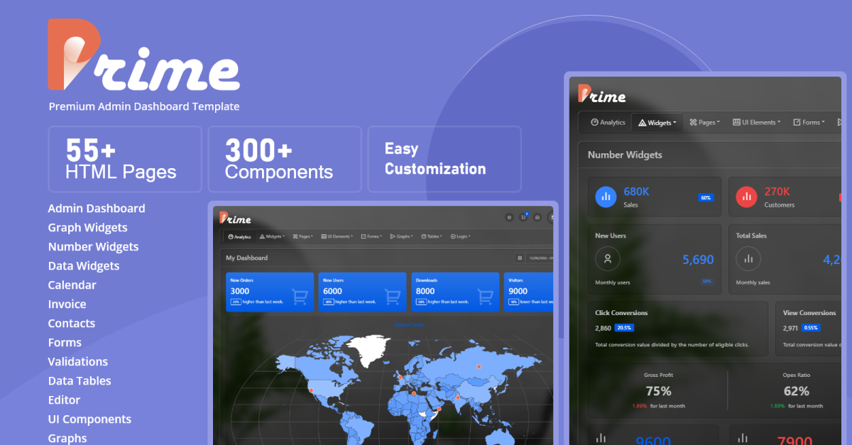 Prime管理模板是一个使用Bootstrap框架构建的预设计 Web 界面,专为创建功能强大且响应迅速的管理仪表板而设计。此模板提供了一系列功能齐全的 UI 组件,例如图表、表格、表单和小部件,旨在简化数据可视化和后端管理。我们秉承移动优先的理念,确保在所有设备上都能实现最佳性能。Prime管理模板非常适合开发人员和企业,它通过提供可重复使用的设计元素、可自定义的布局和可重复使用的组件来加速项目开发。