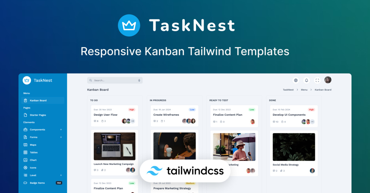 TaskNest – Kanban Board Tailwind CSS 管理员和 UI 套件