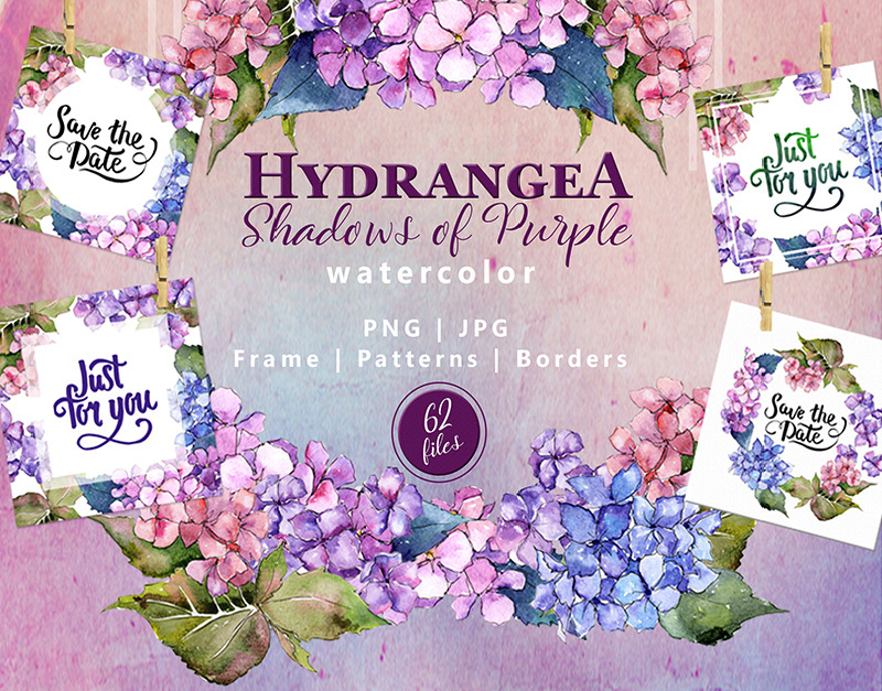 绣球PNG水彩花卉套装-光栅插图
