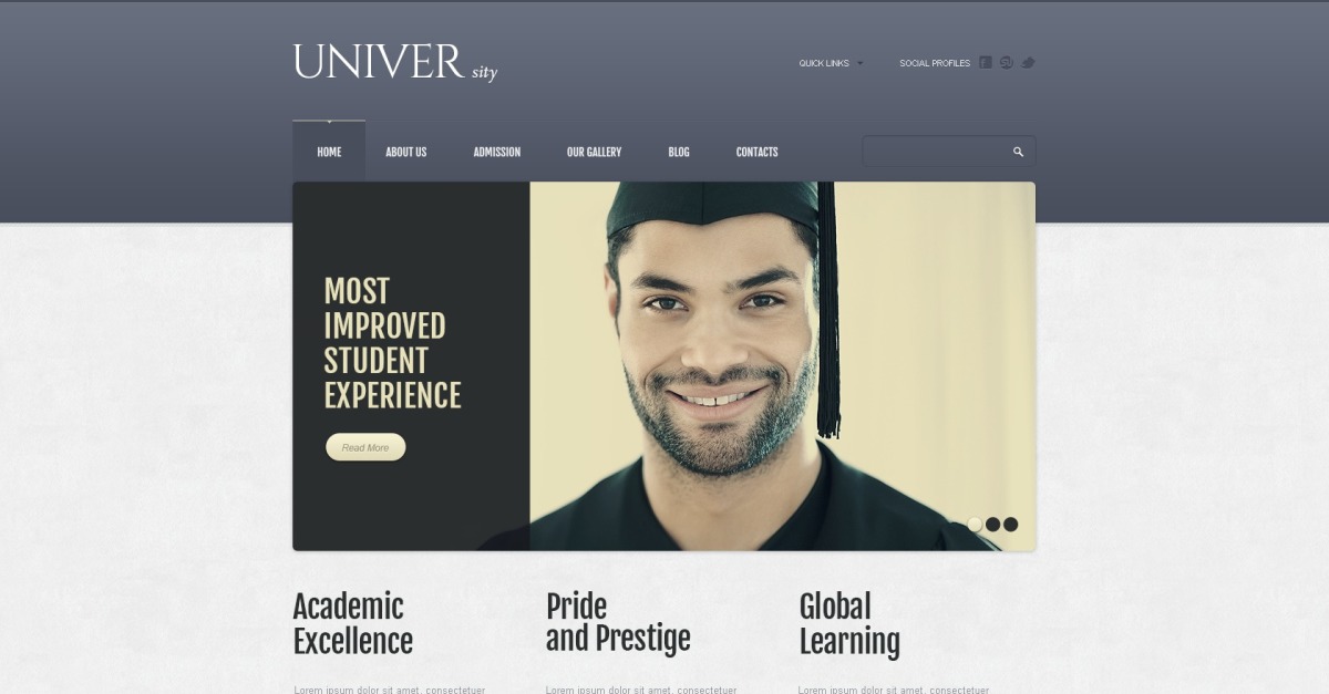 当前的模板具有相当现代的设计和技术方法。该主题针对手持设备进行了布局:所有元素,例如滑动高分辨率图片、三部分内容区域、社交媒体按钮和搜索栏,都可以轻松地通过平板电脑和智能手机进行交互。
