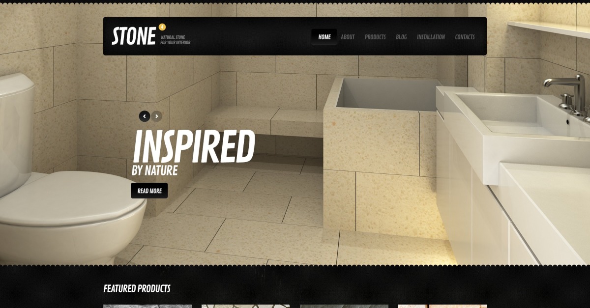 模板的主页上有漂亮的内饰的全屏插图,上面有大字体的标语。下面,带有划痕表面的深色背景与展示室内装饰材料的顶部内容区域相得益彰。访问者会感受到网站设计的实体,这很大程度上说明了您的装饰构图的水平。