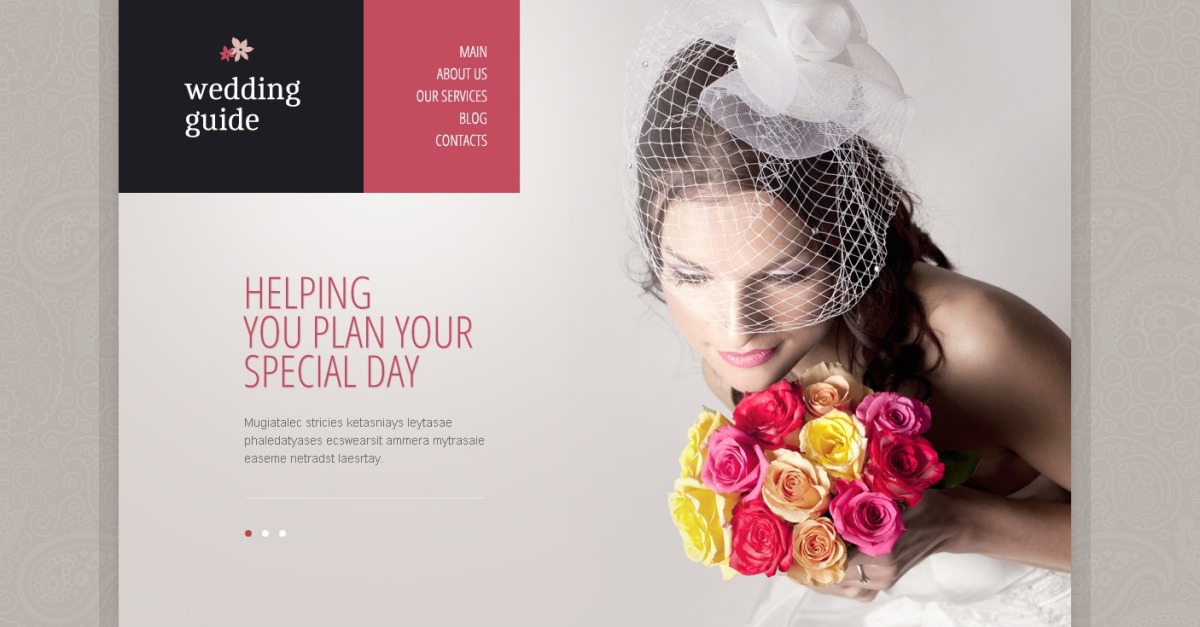 该模板主要以婚礼蛋糕的颜色绘制,立即给出您网站主题的想法。美丽的人穿着婚纱的照片也增加了婚礼的气氛。此外,响应式布局将使您的网站可以从任何地方通过任何屏幕尺寸的设备轻松访问。