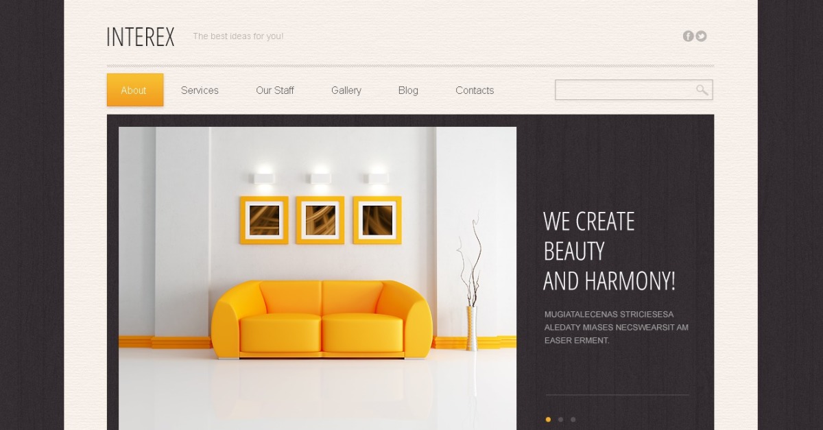 模板的优雅简约设计将展示您对室内装饰的现代方法。在黑色滑块的漂亮对比之下,有一个结构良好的内容区域,非常适合共享信息。除此之外,模板还带有响应式布局,可根据查看设备的屏幕分辨率自动更改其大小。