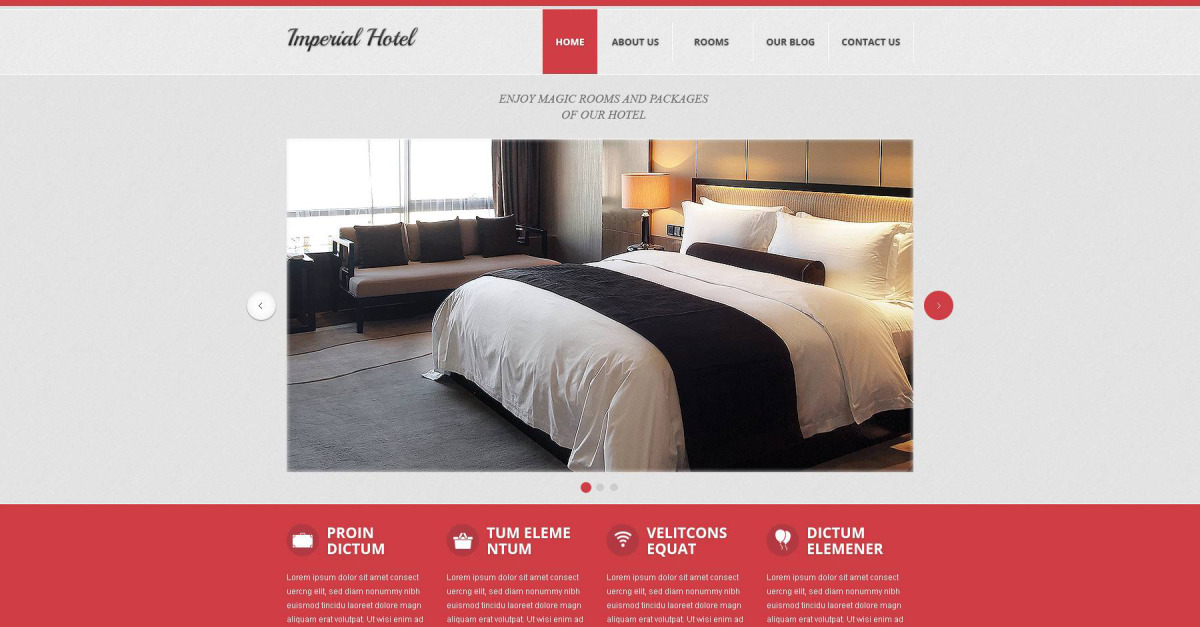 用漂亮的公寓照片和酒店提供的服务清单邀请人们来酒店。暖色调的设计(如本次设计)营造出宜人的基调,彰显酒店的舒适度。顶部滑块宣传最好的房间,供观众订购。结构良好的内容部分讲述了人们可能想了解的有关酒店的一切。主下拉菜单提供全面的导航。