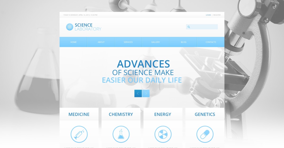 该主题是在单色调设计趋势中创建的,这意味着使用阴影来将观众的注意力集中在内容上。在这里您可以看到蓝色和灰色的简约色调,广泛应用于医疗商业领域的设计。该主题的另一个优点是粗体字体,用于定义内容的重要部分。