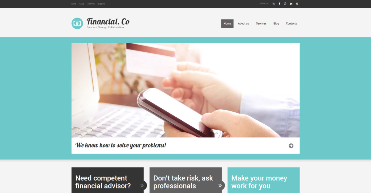 如果您需要建立专业的商业或金融网站,这个模板正是您所需要的。它结合了保守的外观与现代风格和先进的功能。这就是为什么,您可以以最好的方式介绍您的公司。此财务顾问 Drupal 模板的简洁布局使内容看起来更加结构化,因此访问者可以轻松找到他们需要的任何信息。响应式设计是另一个有用的功能,可以使主题在任何屏幕分辨率上都表现良好。
