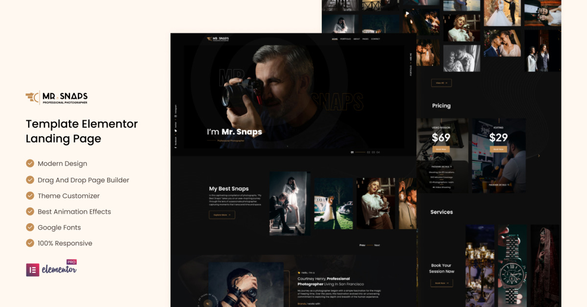 Mr Snaps Photography - 工作室展示婚礼活动 Elementor 登陆页面