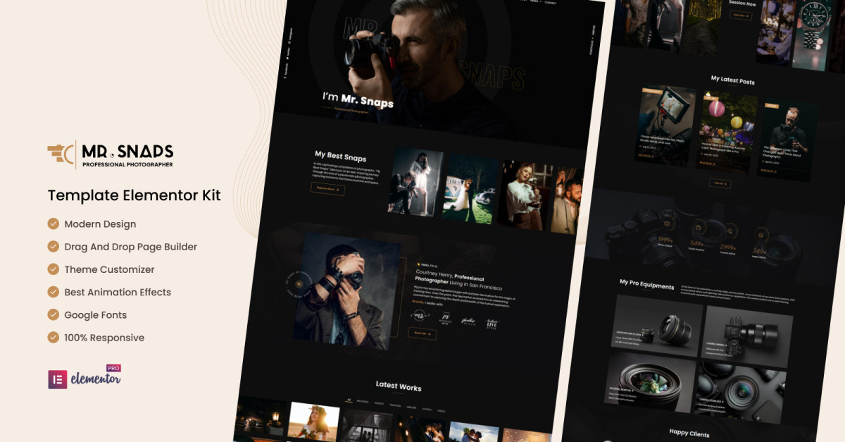 Mr Snaps - 专业摄影工作室 Elementor 模板套件
