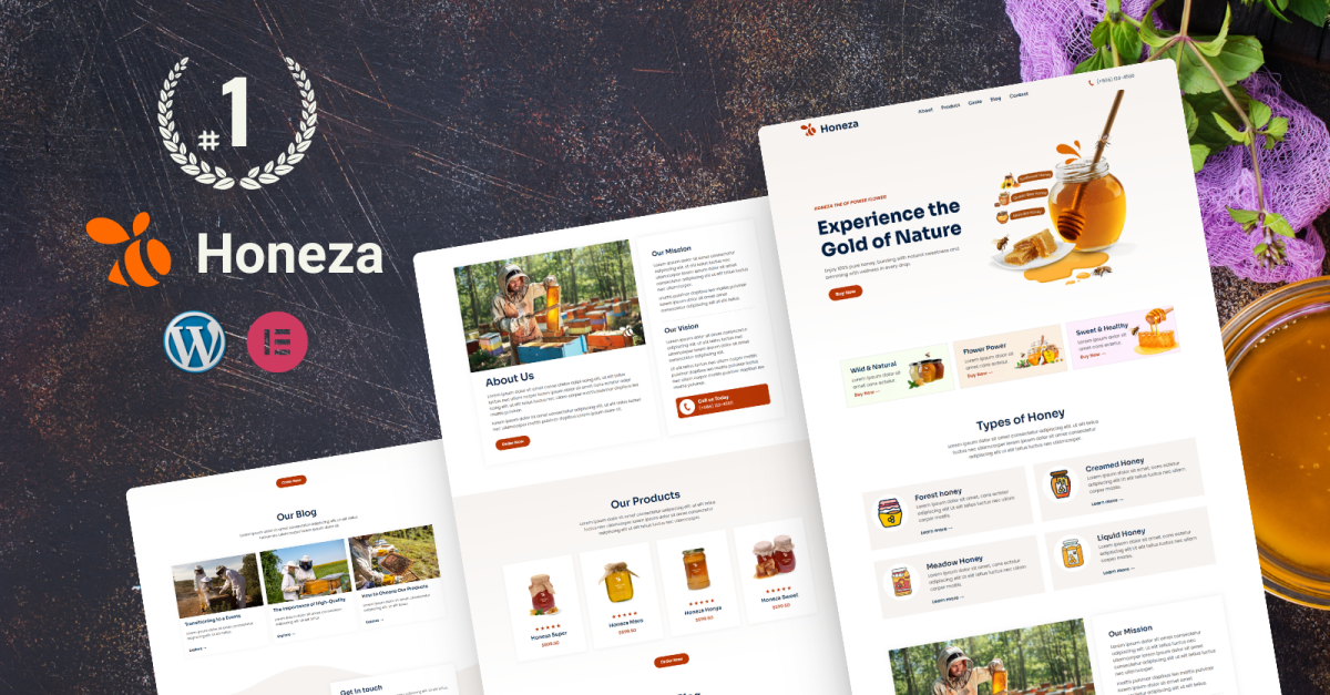 Honeza——有机蜂蜜商店 Elementor 模板套件。