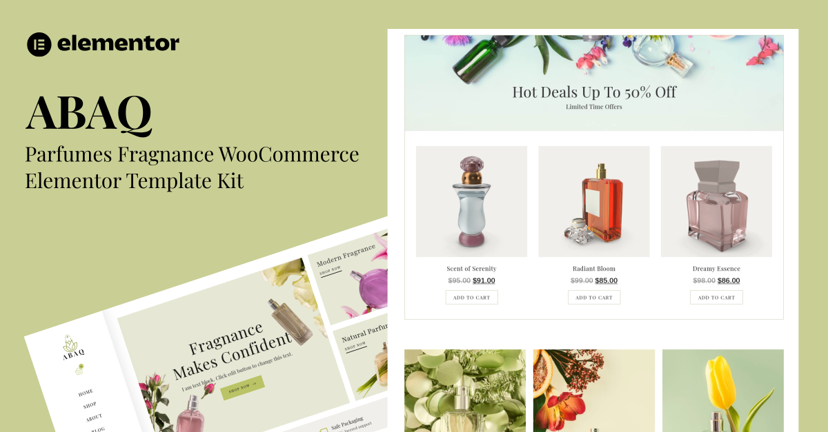 Abaq - 香水香水店和商店 WooCommerce Elementor Pro 模板套件