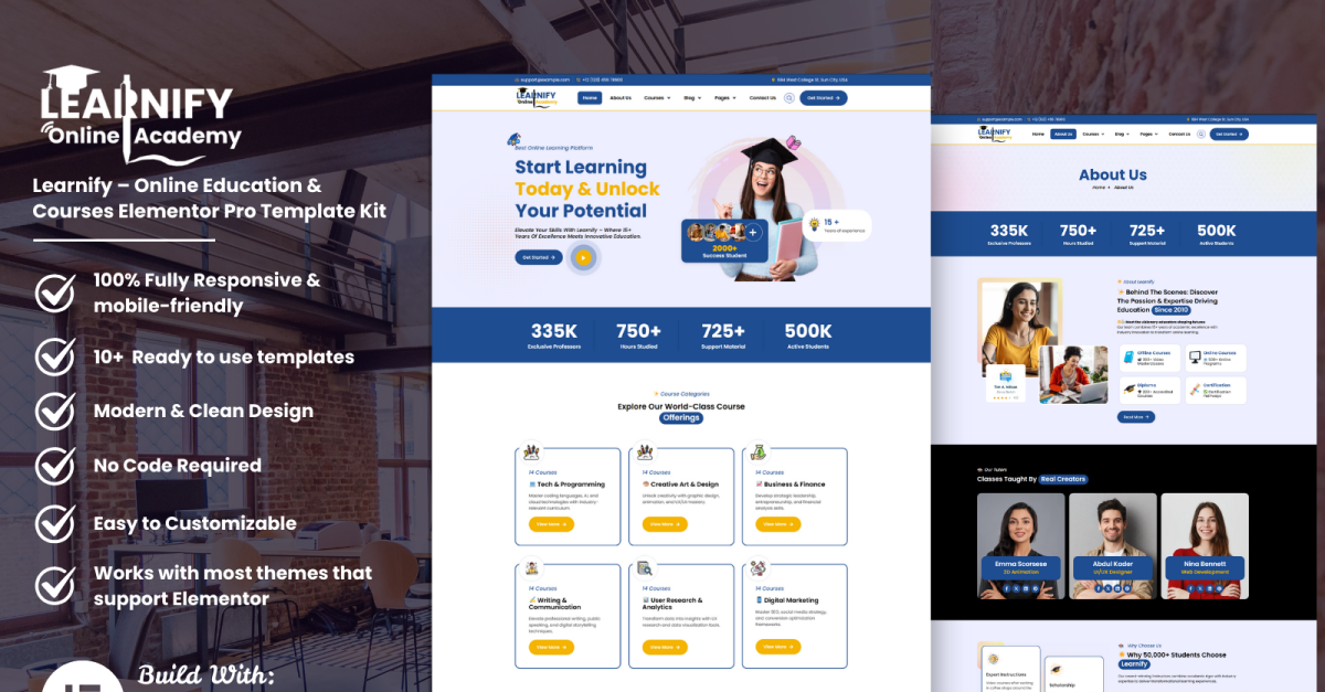 Learnify – 在线教育和课程 Elementor Pro 模板套件