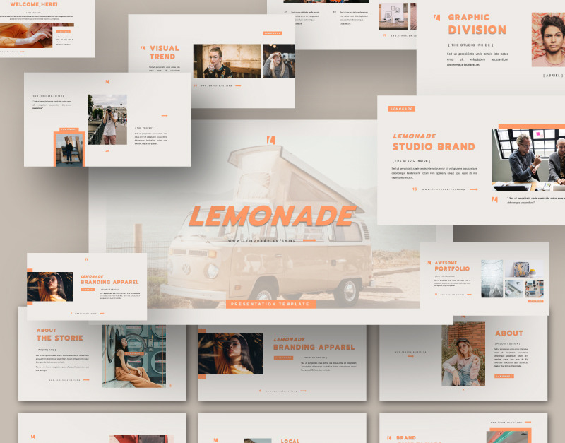 LEMONADE 拥有专业、超现代和独特的设计,每张幻灯片都充满了对细节的热爱和关注。是一个多用途创意创意模板演示文稿是一个多用途演示模板,可用于任何类型的演示文稿:商业、投资组合、企业、品牌、广告等。