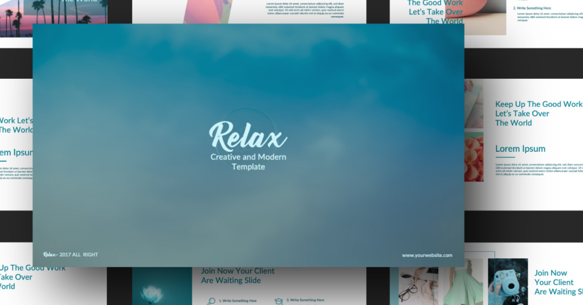 Relax 拥有专业、超现代和独特的设计,每张幻灯片的制作都充满了对细节的热爱和关注。是一个多用途创意创意模板演示文稿是一个多用途演示模板,可用于任何类型的演示文稿:商业、投资组合、企业、品牌、广告等。