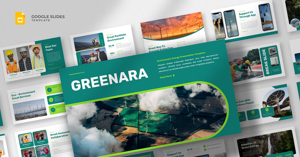 环境、自然、生态、可持续性、农业、绿色能源谷歌幻灯片模板