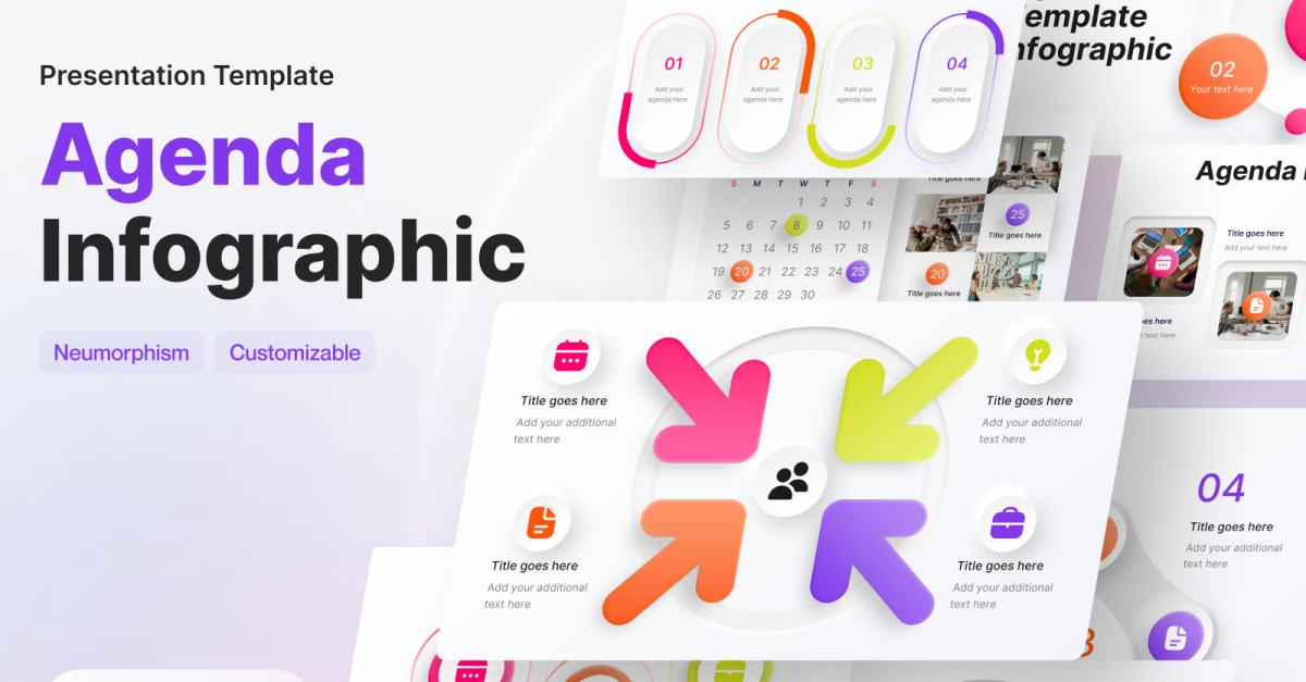 议程信息图 Google Slide是一个完全可定制且随时可用的演示模板。该模板包含各种图表、图表、时间线、方案、工具包和图形设计模板。该模板还包括一个图像占位符,以增强信息图的视觉吸引力。它是可调节的,所有表单都可以在不牺牲质量的情况下调整大小,以及可移动和可编辑的元素。