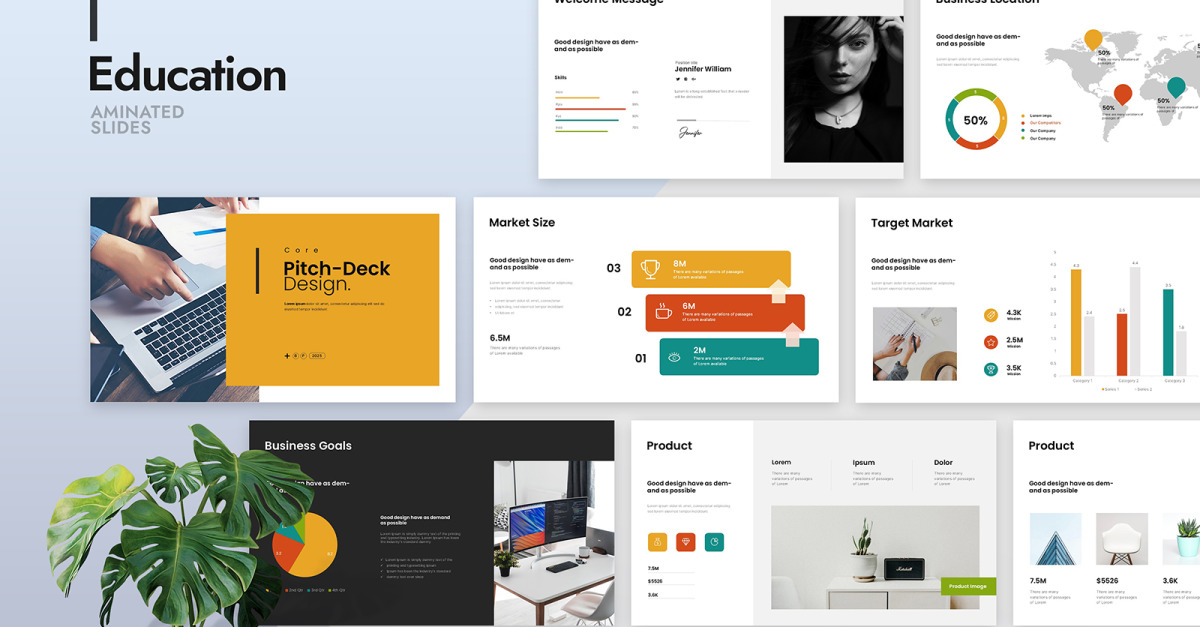 导出并以 pdf、pptx 格式发送给客户。可轻松用自己的字体和品牌颜色替换。