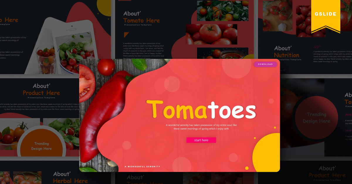 这是**西红柿| Google 幻灯片模板** - 立即获取!,一个出色的 Google 幻灯片模板,可满足所有业务或个人需求。
