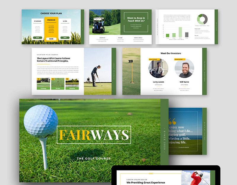 4 合 1 彩色球道高尔夫商务 Google 幻灯片模板是一个专业的演示模板,具有 4 种颜色选项。该演示模板可用于各种目的,例如:创意机构、公司简介、公司和业务、作品集、摄影、宣传片、初创公司,也可用于个人作品集。