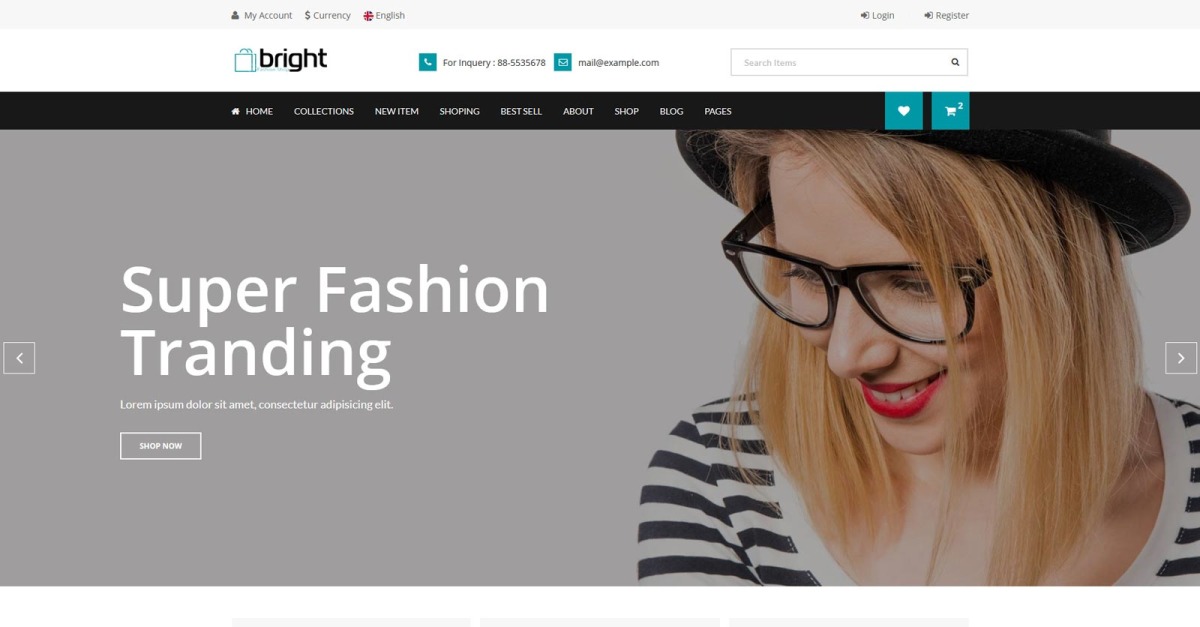 Bright Shop - 电子商务 HTML 模板完全响应式模板适用于桌面、平板电脑、手机和更多布局。