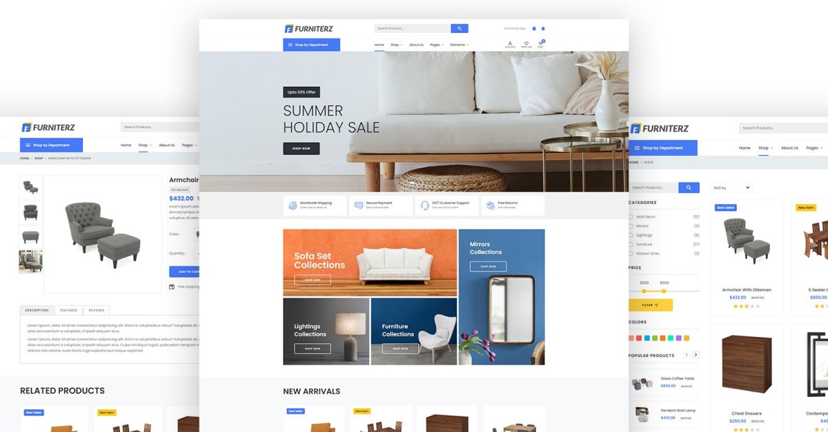 Furniterz 是一个适用于家具和家电商店的响应式 HTML5 模板。该模板采用最新的Bootstrap 4和Scss框架设计,并完全W3优化。 Furniterz 具有完全响应能力,可与各种小型、中型和大型设备配合使用。该模板具有干净的源代码和适当的文档,可以轻松定制。