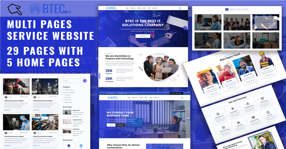Btec是一个高质量且组织良好的HTML 模板,专门为满足商业服务公司的所有需求而设计。 Btec 是一个非常完整且高度可定制的 HTML 模板,具有广泛的自定义页面,29 个页面和无限的设计可能性,将帮助您开发自己的网站。