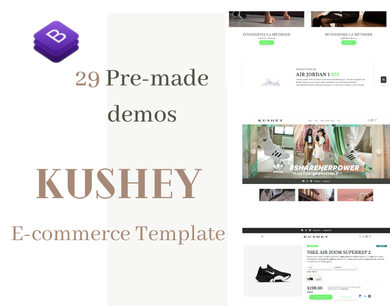 Kushey - 电子商务时尚 Bootstrap 4 HTML 模板主要用于服装、鞋子和配饰的销售。但它可以很快用于其他在线销售目的,例如销售电子产品。
