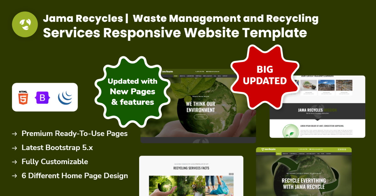 关于 Jama Recycles - 废物管理和回收服务响应式多用途网站模板主题