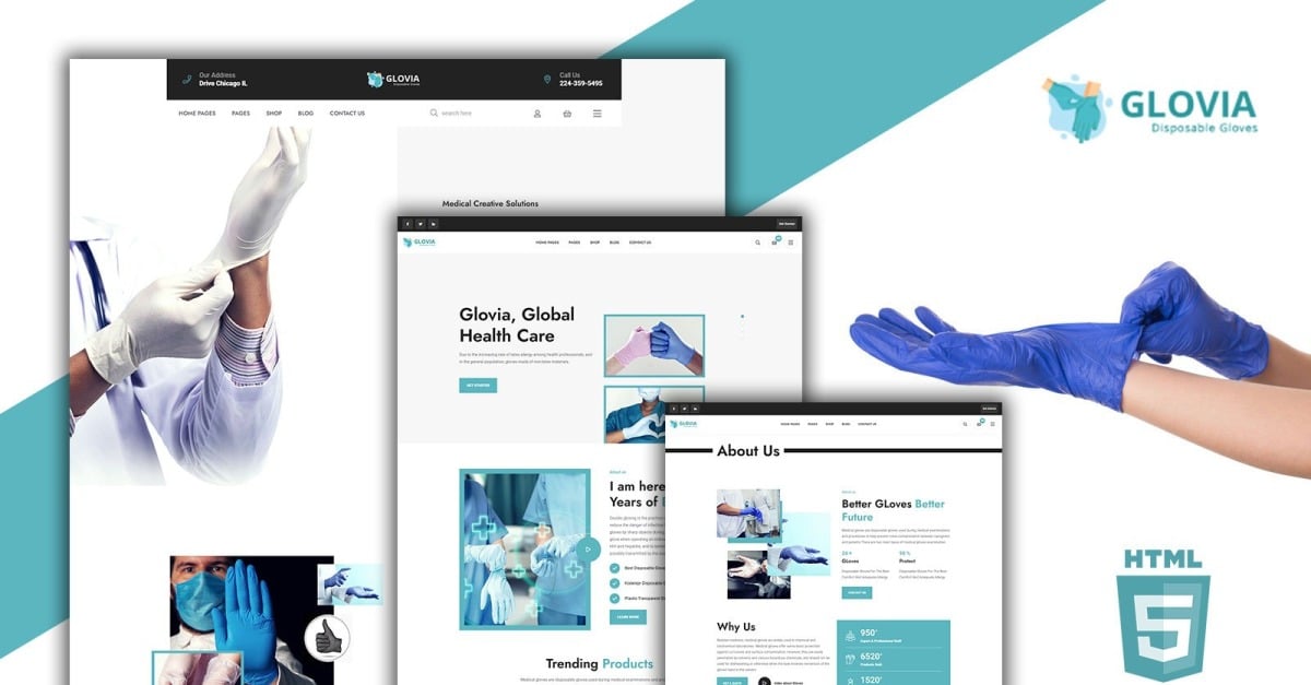 Glovia 手套和医疗配件 HTML5 模板
