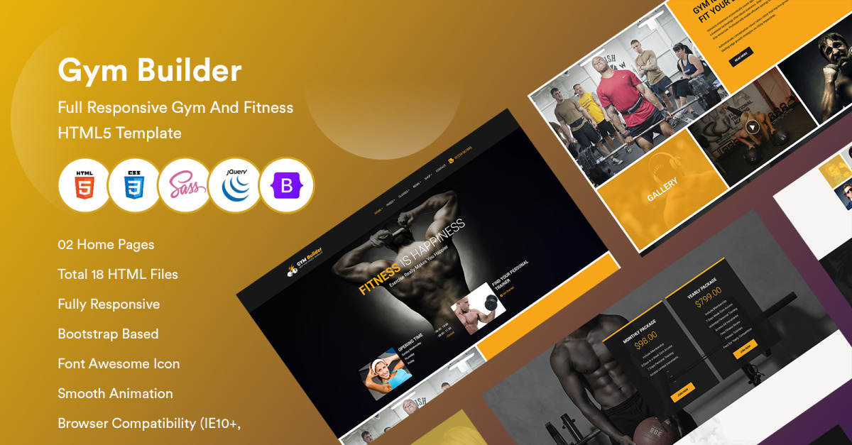 “GYMBUILDER”- 是一个非常漂亮且有吸引力的 html5 模板,专为瑜伽和健身房而设计。它的设计独特,适合任何类型的健身房网站、瑜伽网站或私人教练网站。对用户界面进行了研究并绘制了用户界面草图,同时将其开发为SEO友好的,以便用户可以获得最大的利益。