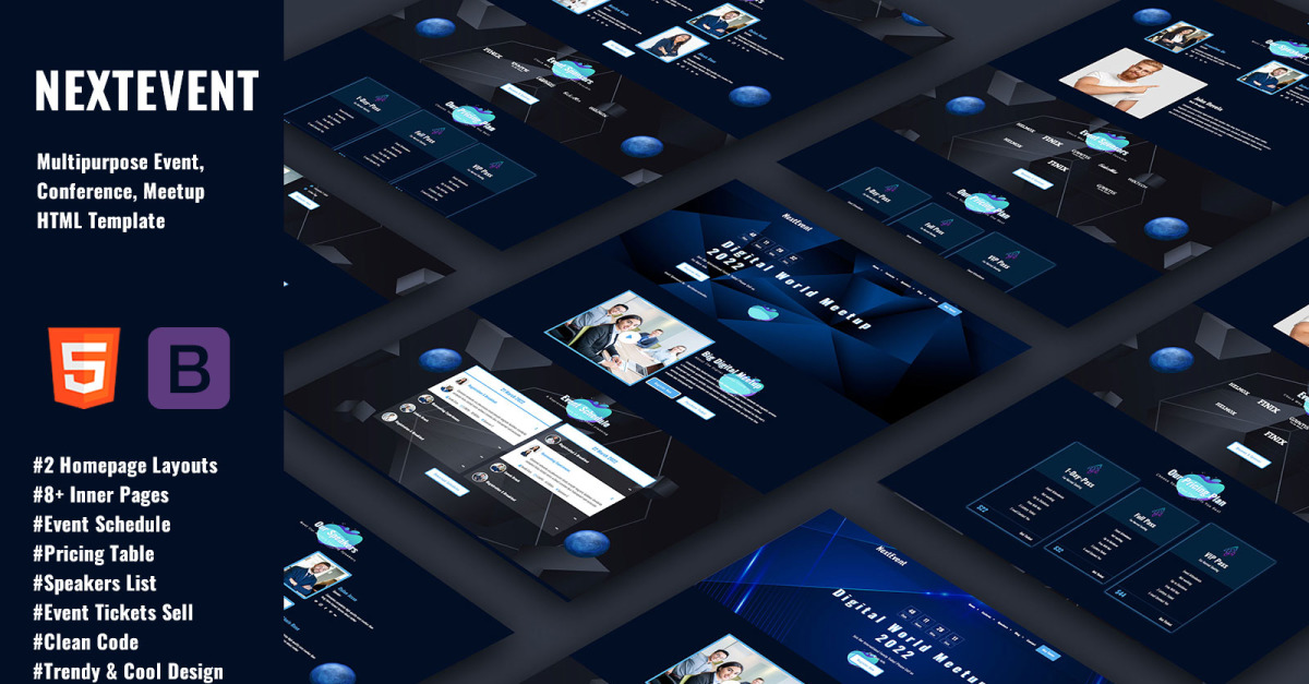 NextEvent -多用途活动 HTML 模板,适用于任何类型的活动相关网站,如聚会、活动、会议和聚会目的。此外,您还将从 NextEvent 模板中获得额外的好处。它有两个更华丽的主页布局。每个布局都将帮助您启动一个外观华丽的网站,该网站具有售票系统,可以轻松销售活动门票。该模板的干净编码结构为您提供了将此模板转换为Laravel、Magento、Joomla 或任何其他技术的绝佳机会。