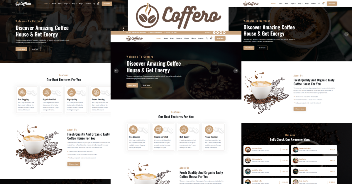 Coffero 是一款优秀的咖啡馆和咖啡店 Bootstrap 模板。Coffero 非常适合咖啡馆、咖啡吧、自助餐厅和相关网站。Coffero 是一款功能齐全的模板,拥有众多特性,适用于任何现代网站。我们精心制作了每一个演示版本,以确保简洁现代的设计。Coffero 主题拥有明亮的交互设计和赏心悦目的简洁外观。您无需成为专业的 Web 开发人员,即可使用 Coffero 成功创建现代咖啡馆网站。
