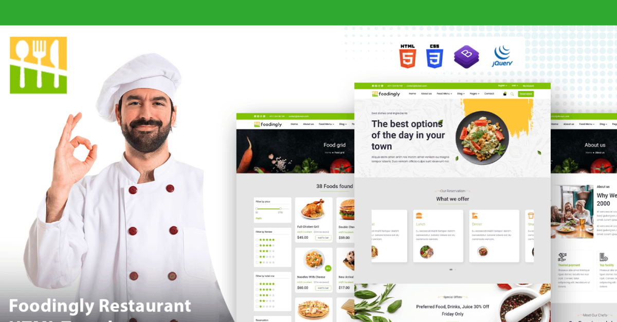 Foodingly - 餐厅 HTML 模板/strong 任何专业开发人员都可以以自己的方式使用我们这个漂亮的模板。在此模板中,除了提前预订页面之外,还包括餐厅或食品网站业务的所有类型的页面。