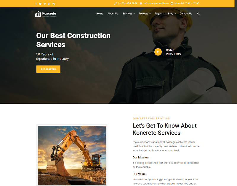 Koncrete - Construction 是一款 HTML 网页模板,适用于各类建筑施工公司和组织。Koncrete Construction 适用于所有服务性项目,包括住宅建设、道路建设、管道、电气、地板和屋顶。Koncrete Construction 已为各种类型的组织(包括小型和大型公司)完成了多个项目。Koncrete Construction 拥有 50 年的经验和高素质的员工队伍。我们拥有完整的多项目管理经验,服务对象涵盖大型组织和小型组织。