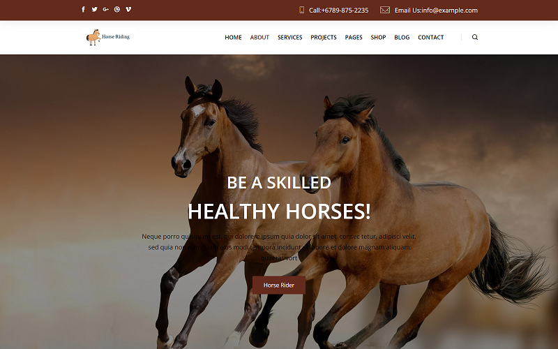 马 HTML 模板专为马驾学校、马术旅游、马厩承运商、马术机构、育种制作。使用此模板,您可以展示您个人和丰富的马匹和小马。马匹模板专门为马术学校、马术旅游、使用马厩、马术机构、饲养。模板具有出色的设计和大量功能,可以创建您的网站。马完全响应!在手机和平板电脑上很受欢迎。该模板具有您在线形象所需的功能,例如使用大学、博客网页等。马模板可以成为您在线形象的绝佳选择。