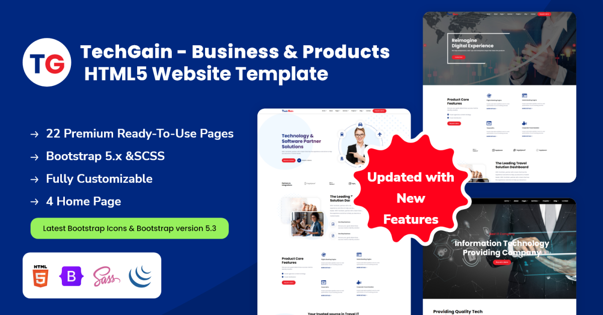 V3.0 - 04 March 2024 Updated - bootstrap version v5.3.1 to v5.3.2 Updated - bootstrap icons v1.10.5 to v1.11.3 Fixes - Some CSS & JS issue Added - New - Video Home Page Added - New - Particles Home Page