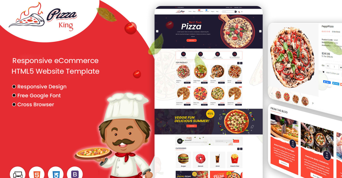 PizzaKing Html 网站模板适用于披萨、咖啡馆、汉堡销售和餐厅业主,采用最新的网络技术和用户友好的界面设计,该模板非常适合希望建立强大在线形象的企业。