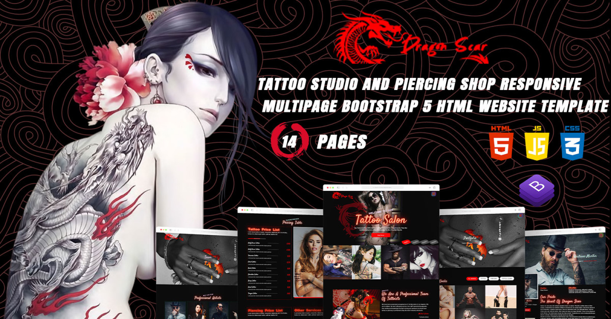 Dragon Scar - Tattoo Studio and Piercing Shop 响应式多页 Bootstrap 5 HTML 网站模板