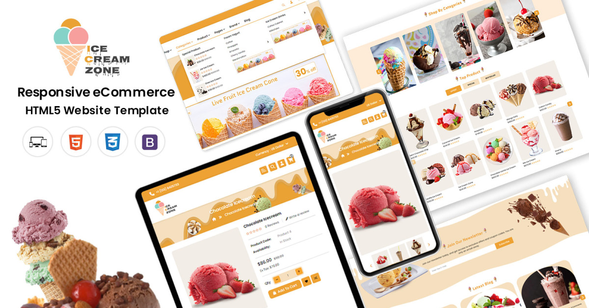 IceCreamZone Web - 用于冰淇淋店和甜品店的令人耳目一新的 HTML 模板