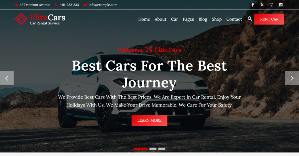 凭借简洁、模块化的代码和详细的文档, EliteCars让您可以轻松启动、定制和管理您的汽车租赁网站 - 无需高级编码。