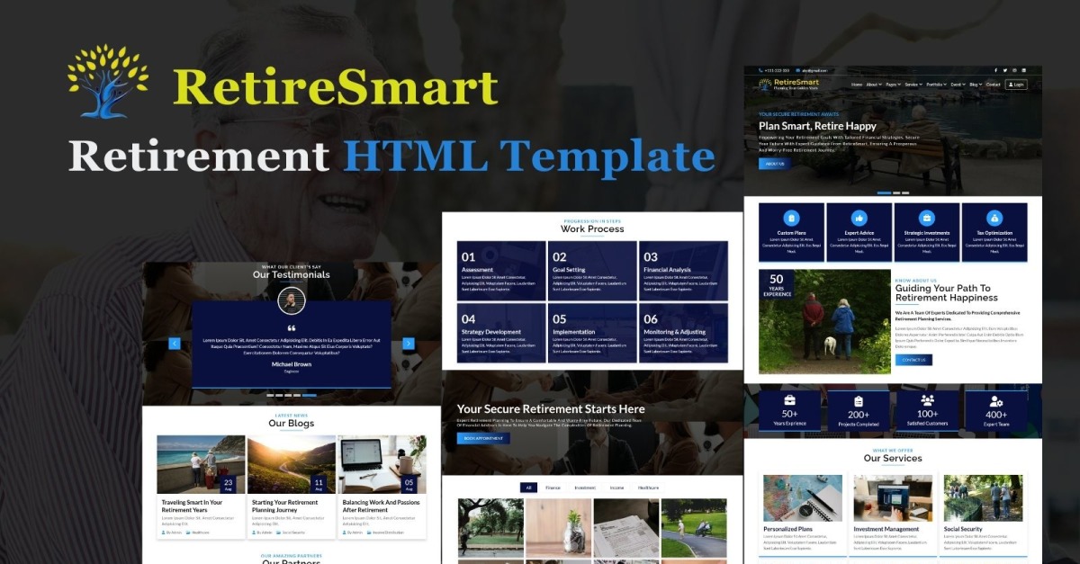 RetireSmart 是一个用户友好的 HTML5 网站模板,旨在简化退休计划。该模板使用 HTML5、CSS3 和 JavaScript 创建,通过满足各种退休需求而脱颖而出。该模板就像为专业人士定制的套装,提供个性化计划、投资管理、社会保障见解、遗产规划、收入分配策略、医疗保健指导和遗产策略等服务。这是您为客户提供最佳服务的工具包。
