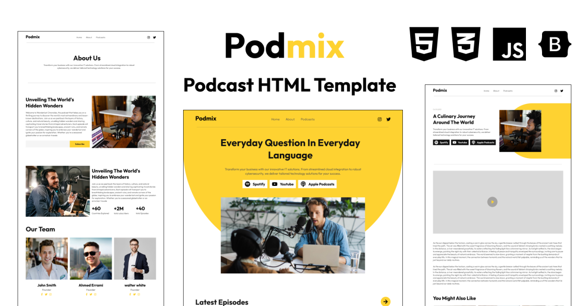 吸引您的听众:Podmix 提供视觉沉浸式体验,从第一次点击开始就吸引您的听众。其响应式设计确保跨设备无缝导航,提高观众参与度。