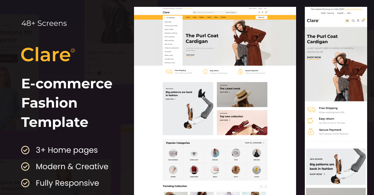 - 完全响应式: Clare 设计为完全响应式,无缝适应不同的屏幕尺寸和分辨率,提供跨设备的最佳观看体验。