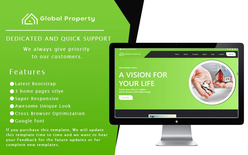 Global Property房地产网站模板是一款专业设计、用户友好的HTML5完全响应式网站模板,专为房地产行业量身定制。它为房地产经纪人、经纪人和机构提供了一个全面且具有视觉吸引力的平台,可以在线展示他们的房产和服务。