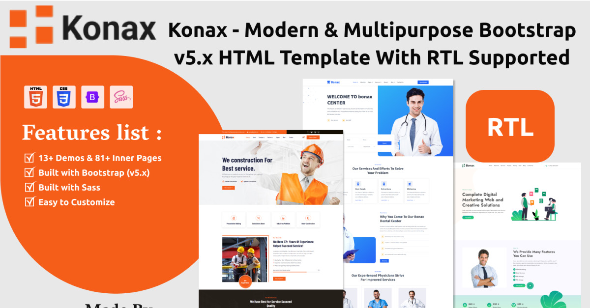 Konax - 支持 RTL 的现代和多用途 Bootstrap v5.x HTML 模板