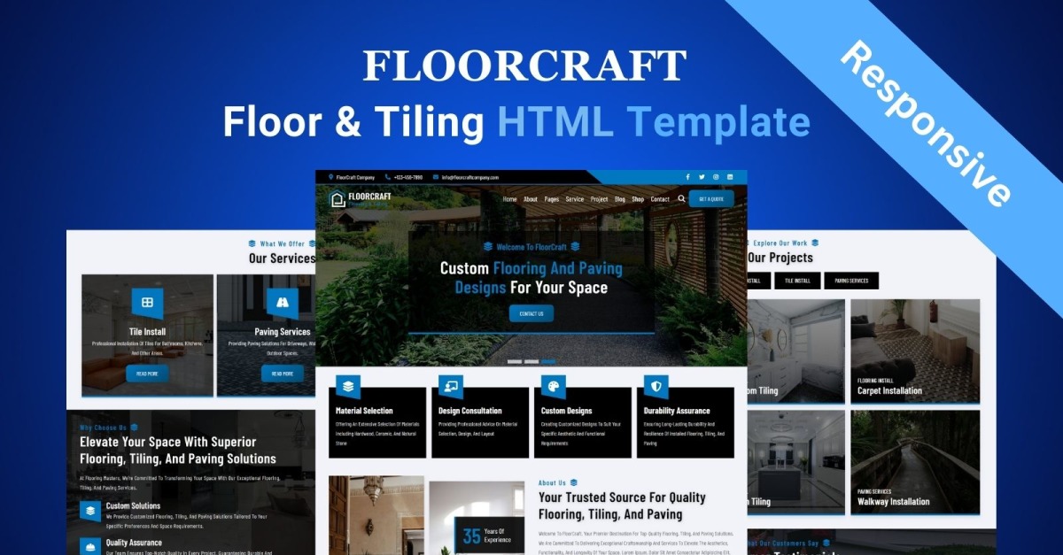 FloorCraft 是一个富有远见的地板、瓷砖、铺路服务 HTML5 网站模板设计,专为地板、瓷砖和铺路服务行业量身定制。通过HTML5、CSS3 和 JavaScript 技术的无缝融合, FloorCraft 提供了一个多功能平台,可以满足地板、瓷砖和铺路专业人士和爱好者的不同需求。 FloorCraft 对细节一丝不苟,超越了传统模板,提供了一系列独特的功能,以提升地板和铺路企业的在线形象。